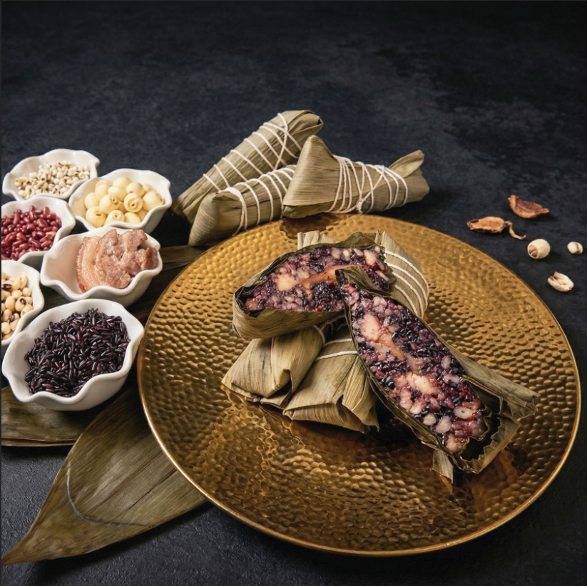 嚴選食材: 台梗五號糯米、養生紫米、蓮子、特選豬肉、北海道瑤柱、眉豆、赤小豆、薏仁。品嚐筆記: 結合多種高營養價值的穀物,搭配特選豬肉與鮮甜瑤柱,清爽不膩口,讓您享受過節氣氛的同時也能兼顧養生無負擔。